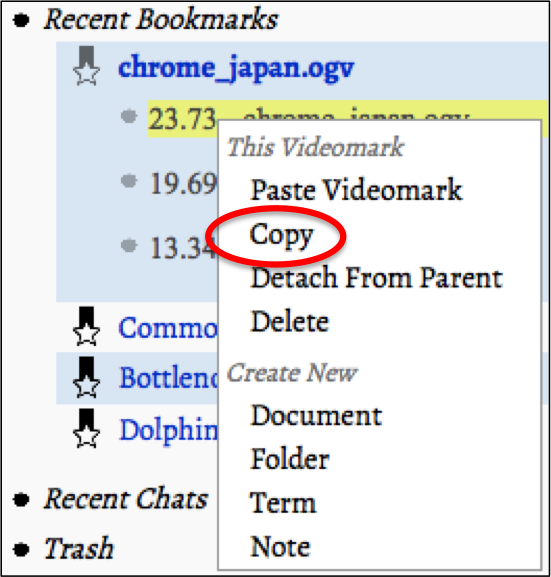 the item you want to paste to, then choose “Paste Videomark ” from the context menu