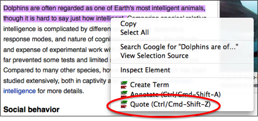 If you highlight text in the browser, you can quote that text in the nStudy panel. To add a